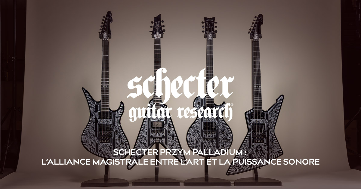 Schecter Przym Palladium : l’alliance magistrale entre l’art et la puissance sonore Dans l’univers des guitares électriques haut de gamme, Schecter ne cesse de repousser les limites entre design artistique et excellence musicale. Avec la nouvelle série Przym Palladium, la marque californienne signe une collaboration audacieuse avec le studio Przym, spécialisé dans la gravure de